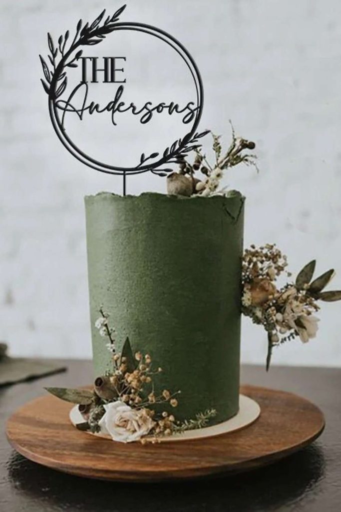 For a rustic or bohemian wedding, wooden or metal toppers are a great choice. These toppers can be customized with the couple’s initials, names, or a meaningful quote. They also come in a variety of shapes, from simple circles to intricate designs. Wooden textures can add a natural, earthy element to the cake which is a bit more understated than figurines.