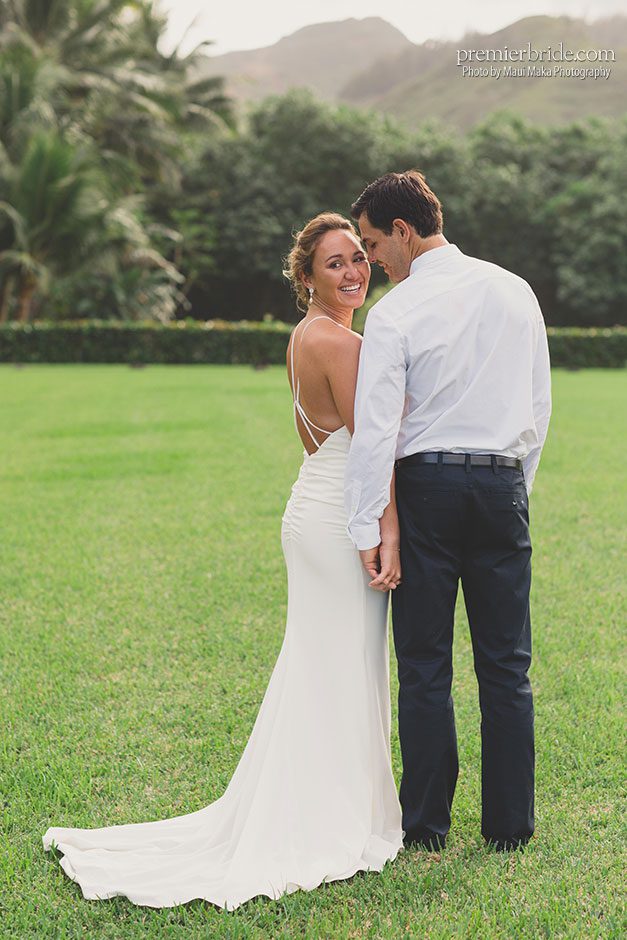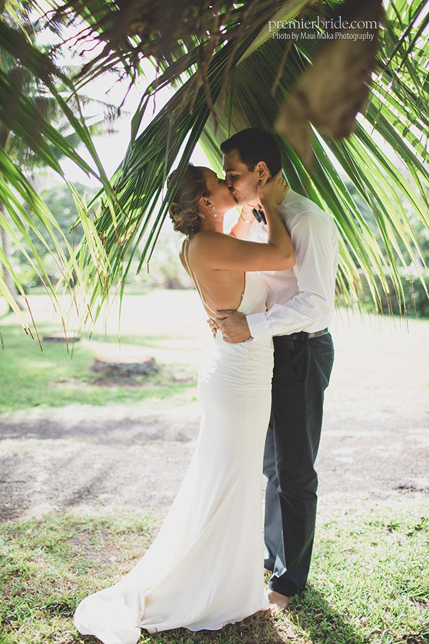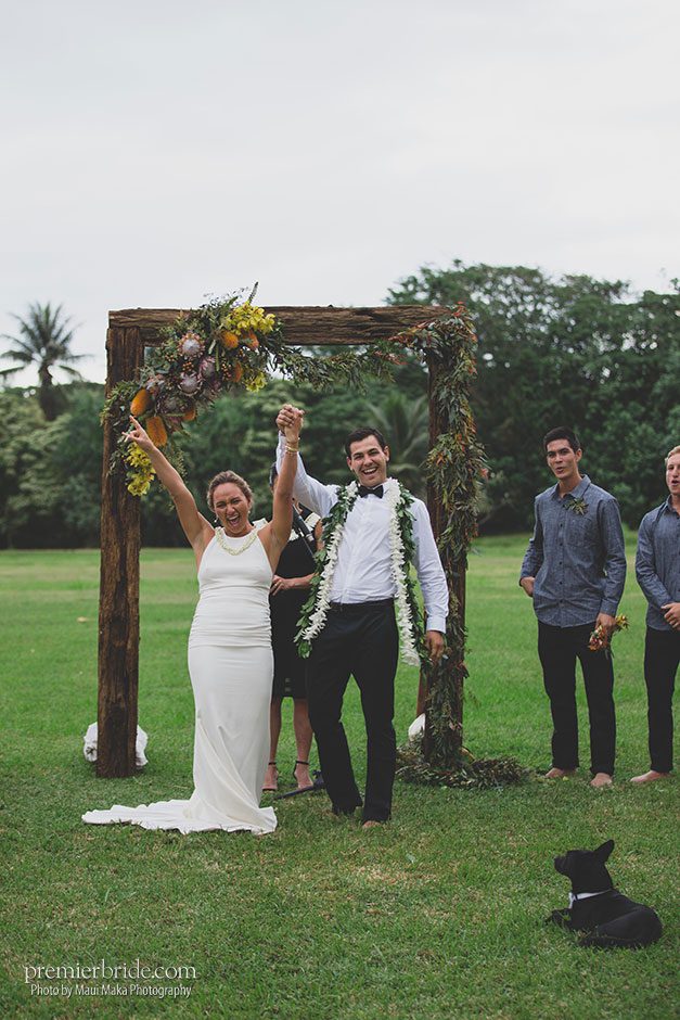 On Saturday, December 16, Carissa married her high school sweetheart, Luke Untermann. It was a gorgeous outdoor ceremony that took place at a friend’s Oahu property. Carissa looked absolutely stunning in a minimalistic gown that she found at a small shop on the North Shore and bare feet. The theme of “island living” was kept consistent throughout their ceremony and reception and the couple was “so happy with how everything turned out!”