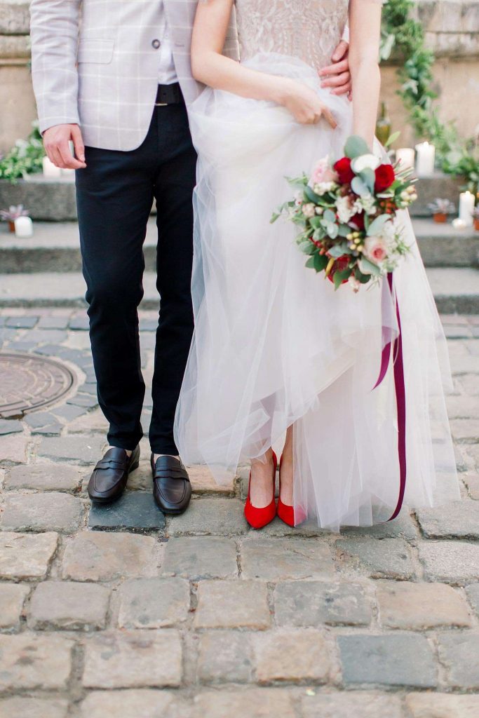 You want your footwear to complement your dress, and there are factors like length and style that are then going to influence your shoe choice.