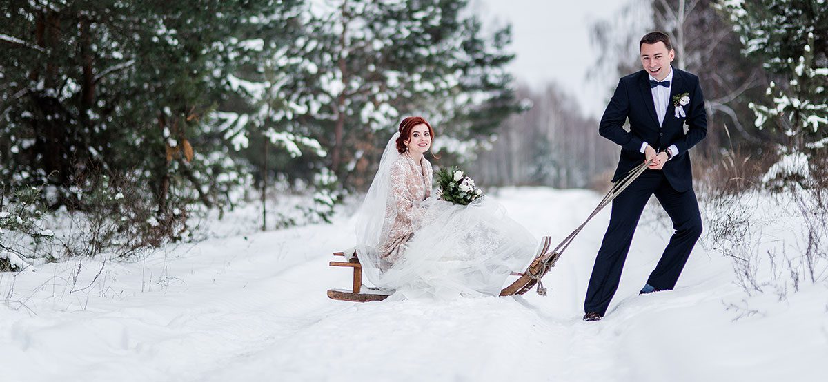 Winter weddings can be quite beautiful (especially if you’re lucky to catch a fresh snowfall) but can sometimes be challenging when it comes to transportation. Of course you can go with a four wheel drive vehicle but you can also try some other fun alternatives. Horse drawn carriages, horseback, snowmobile, sled, ice skates, or even a dog sled are among the many options. Not only can these ideas be fun – but they make great photo opportunities!