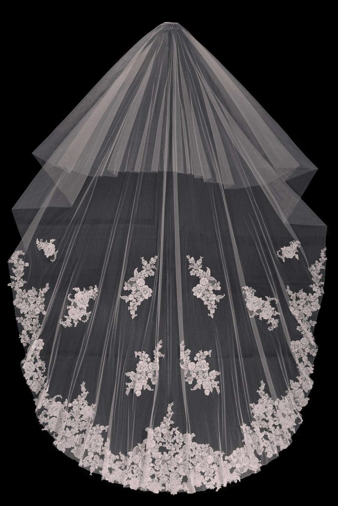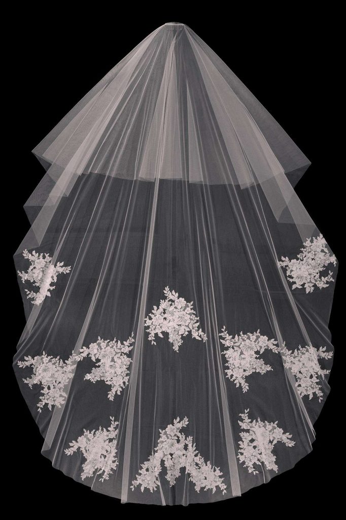 Each of the 25 veil designs are inspired by their own feminine personality, featuring embroidered shimmer lace, 3D embellishments and luxurious tulle. Available mostly in cathedral length with traditional blushers (for grand entrances and “unveiling” moments), each veil is custom made and ranges in price from $450-$1,300. Visit Rita Vinieris’ website for more information