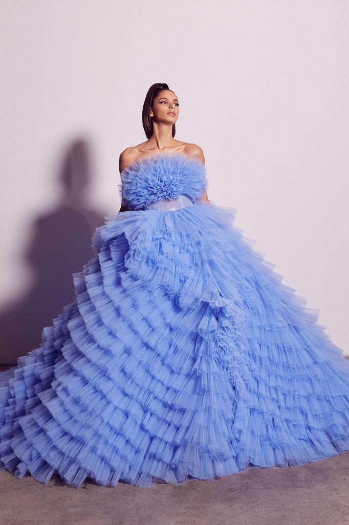 After a year like no other, we’re seeing trends in bridal gowns GO BIG and really intricate. Lots of ruffles, layers, tulle and lots of little details in thinks like bridal gowns and veils. Here are a few of the latest releases from three different designers.
