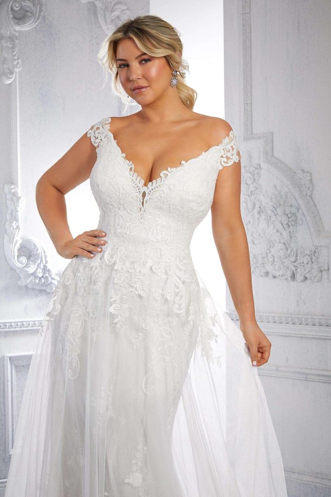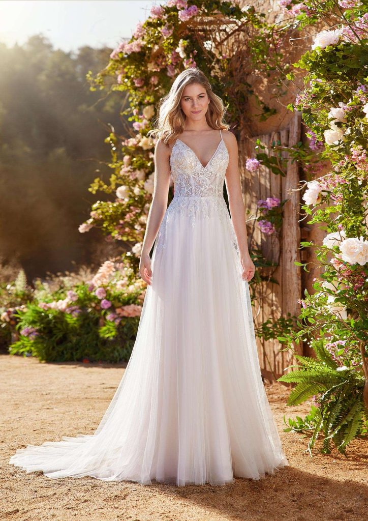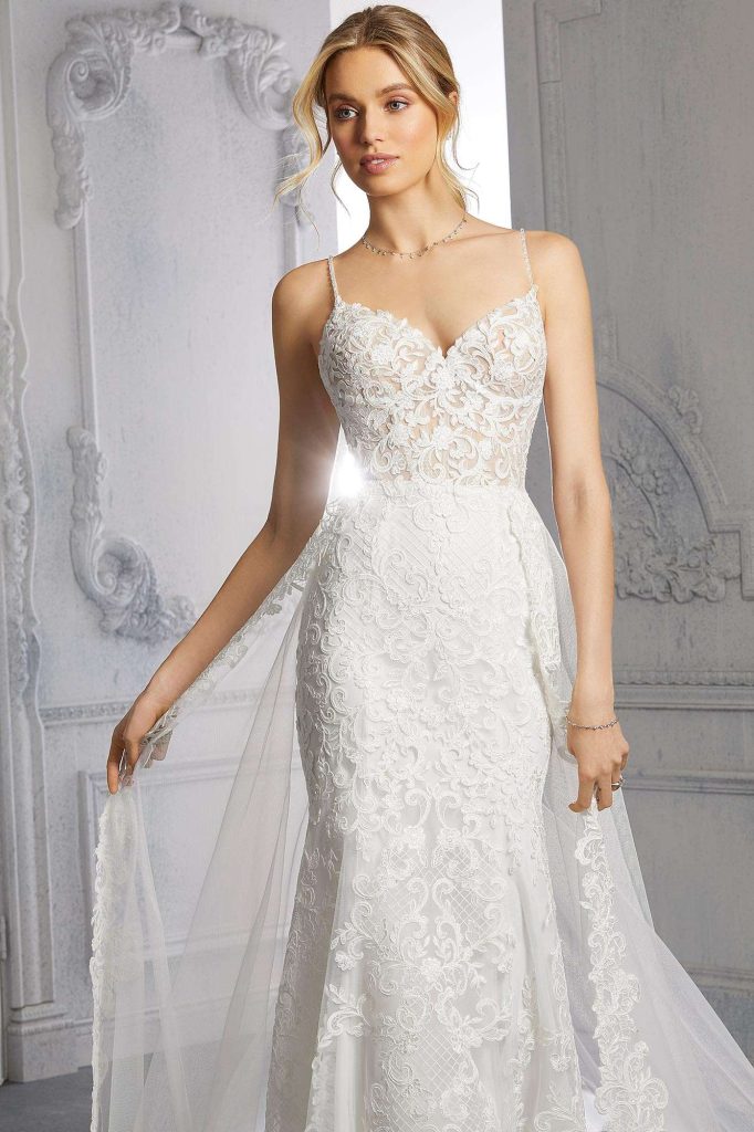 This Morilee Collection pulls inspiration from the mystery and beauty of the stars. The Starlight Collection incorporates mesmerizing details, brilliant reflecting layers, and delicate textures. Luxurious fabrication and ethereal movement is a constant throughout the seasonal range. Twinkling layers and airy fabrics are brought to life via hand beading & star bursts of sequins. A truly visionary collection that pushes the boundaries of classic favorites and takes them to new heights. Flattering new necklines are showcased through the range including the ‘Bridgerton’ inspired square neck style, the modest ballerina oval as well as incorporating cup corsetry in the mix.