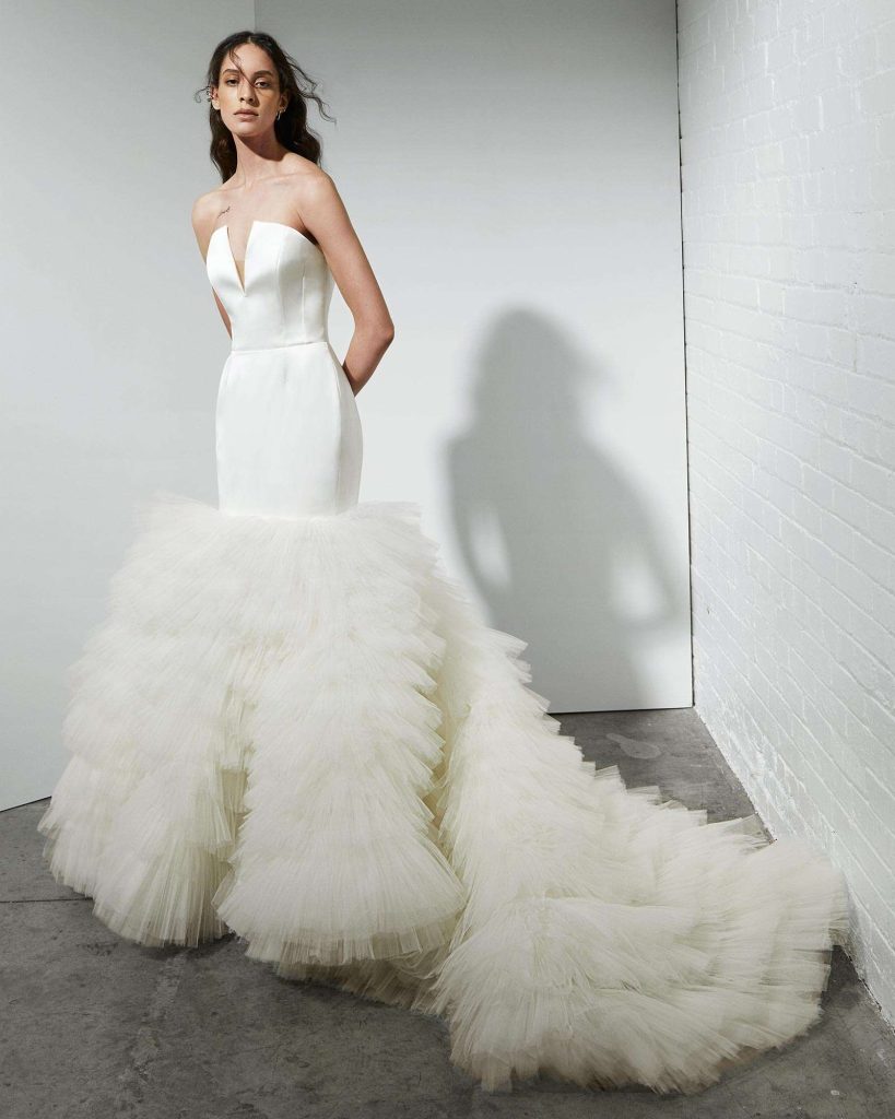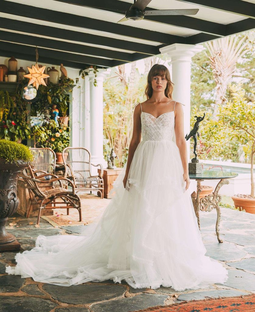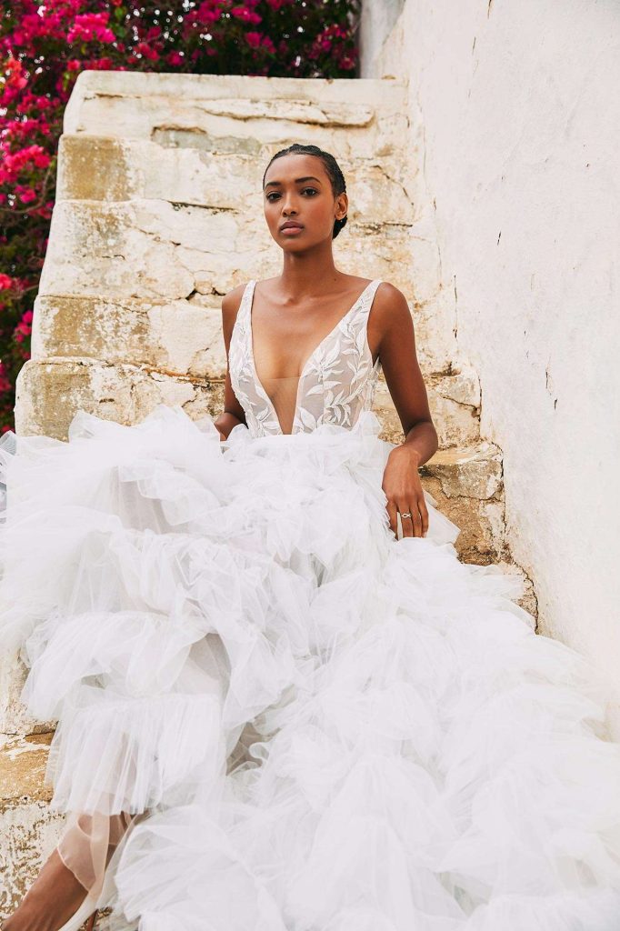 The latest from Rita Vinieris’ Rivini Spring/Summer 2022 Collection and the Alyne Spring/Summer 2022 Collection – where nature meets romanticism. Combining art, ecology, and a dose of poetry that includes features from diaphanous gossamers and tulles to dimensional floral laces and sustainable crepe, the details are delicate and airy allowing the fabrics to gently drape over the curves of the body. This season is about lush layered textures and fluid architecture merging together in perfect harmony.