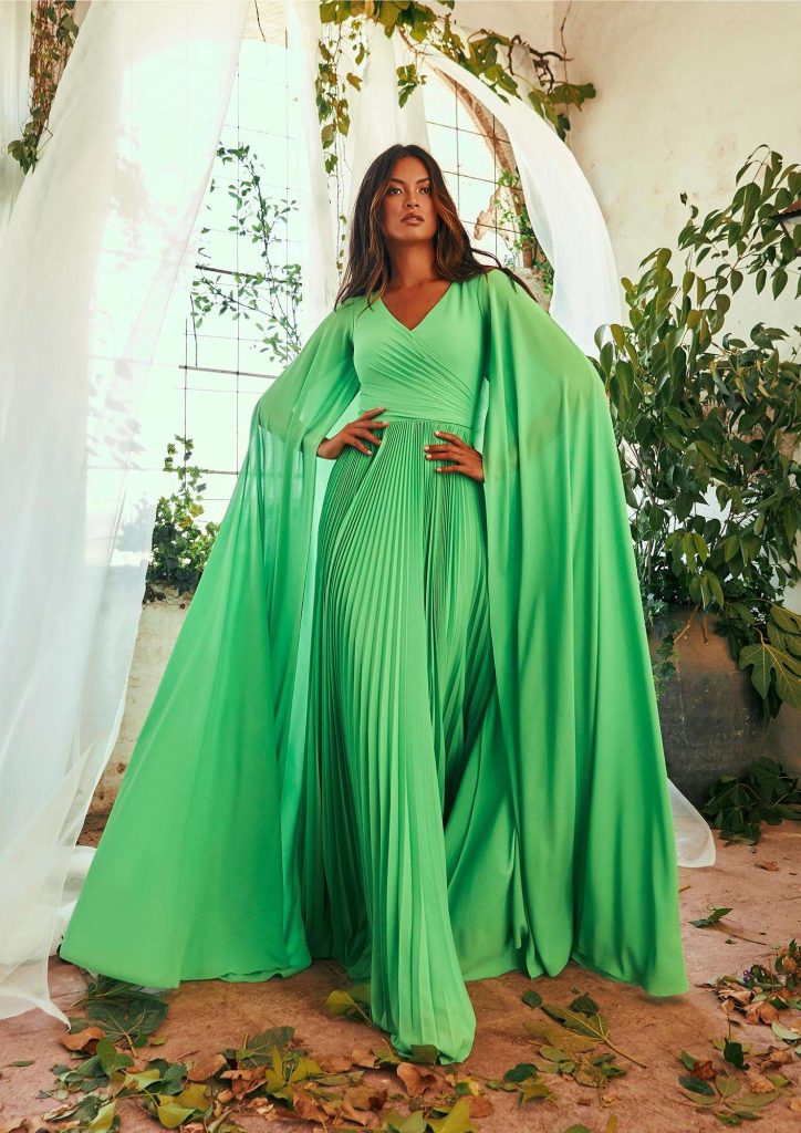 The dresses feature details like ruffled hemlines and sleeves, necklines with beaded designs and light capes that complete the designs while bringing a sophisticated touch.