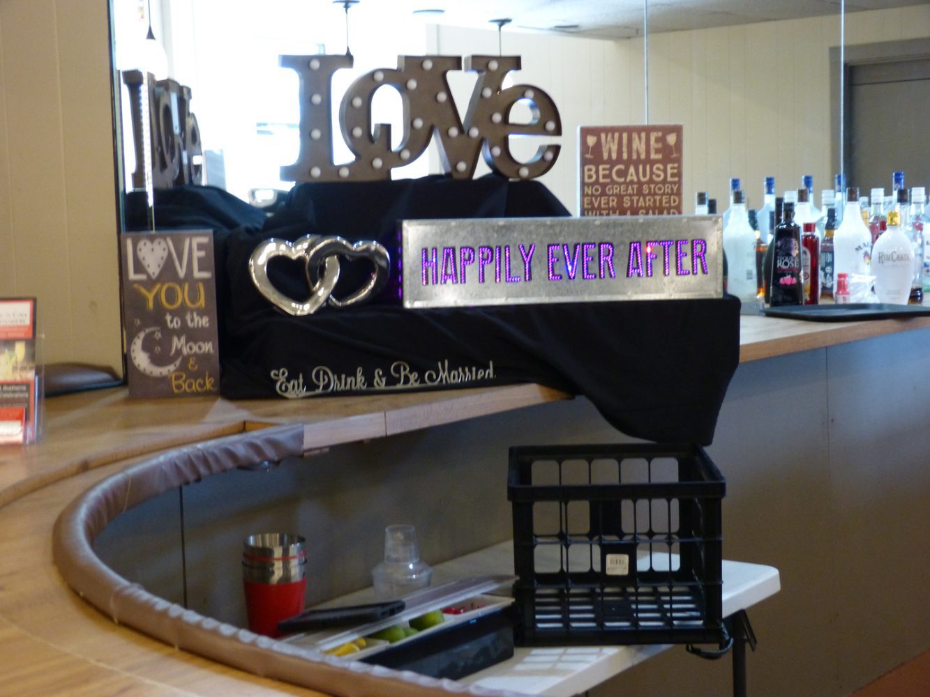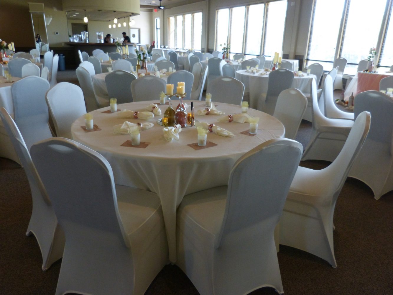 Events at Turkey Creek can provide up to 400 chairs 50 6′ round tops and ten 6-foot rectangular tables allowing for a versatile floor plan. Â And as a free-standing facility you have the option to choose the cater you wish to work with. The banquet room does have a built-in bar and you can supply your own liquor wine and beer providing you have the proper license insurance and security.